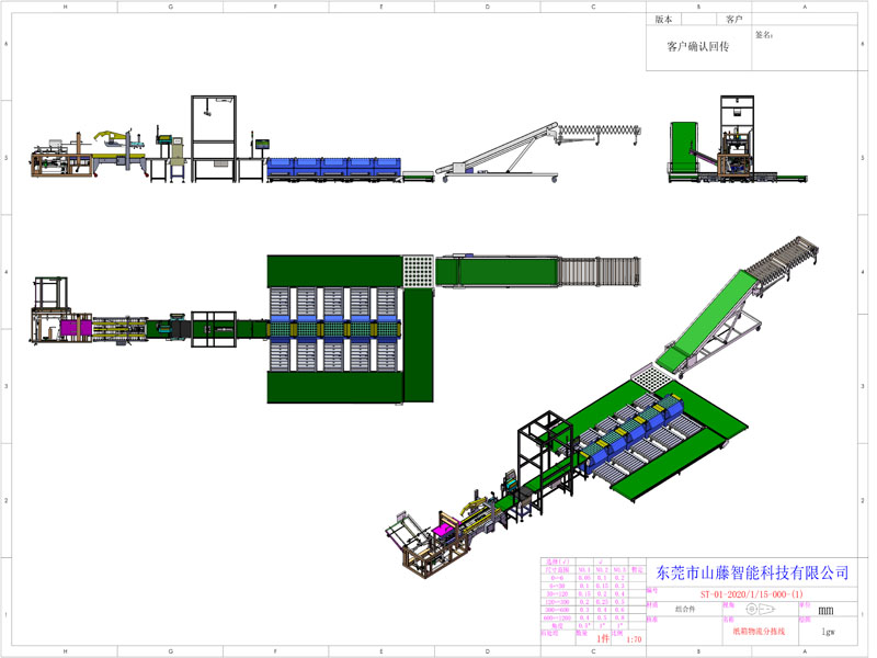 以上四部分装置通过计算机网络联结在一起,配合人工控制及相应的人工处理环节构成一个完整的自动分拣系统。